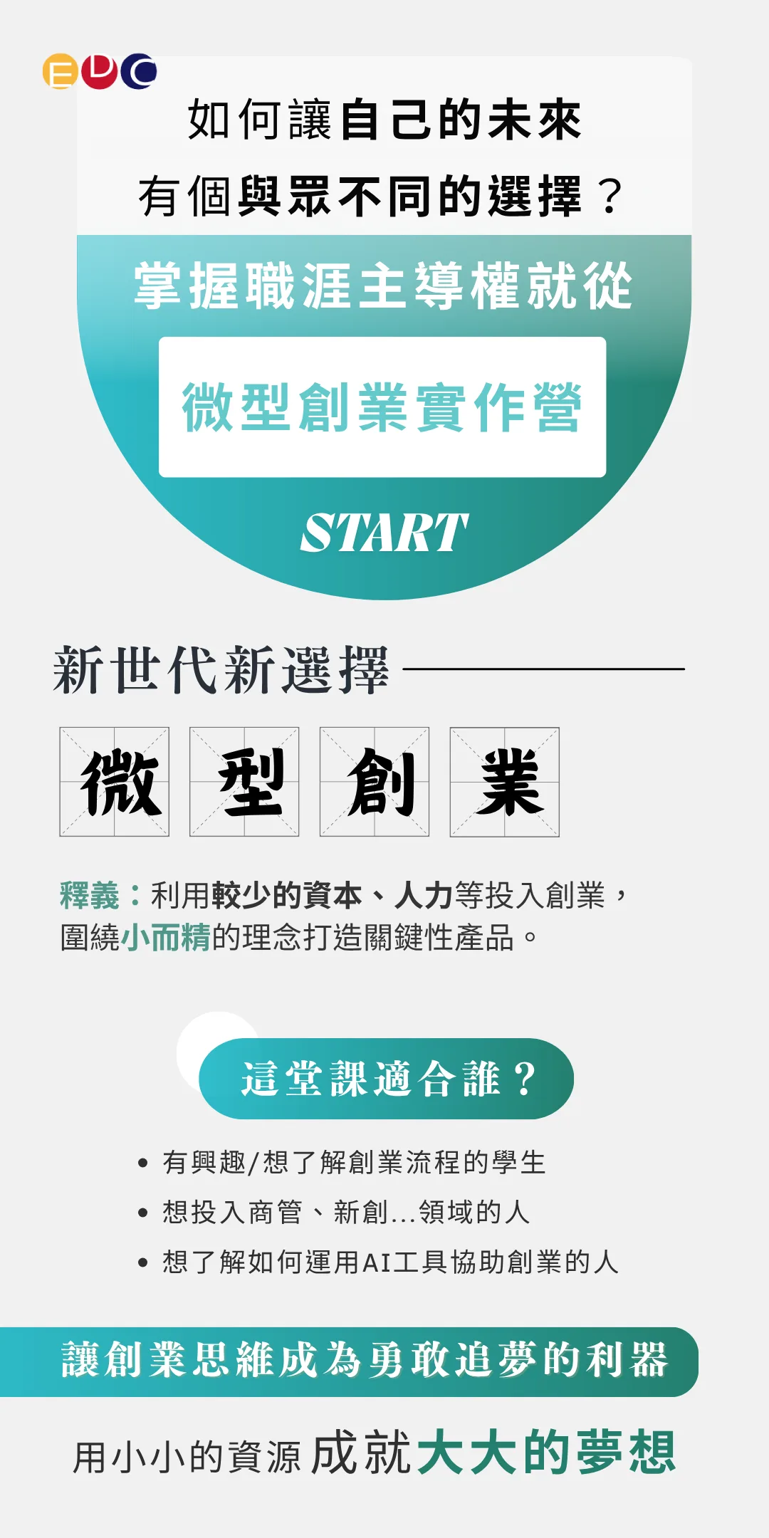 4.清寒優惠:每個營隊有三個名額供清寒學生免費報名(僅需繳交材料費)。每人/每年僅限申請一個營隊。請先至EDC官方LINE繳交相關證明,課務人員將協助進行後續報名事宜。